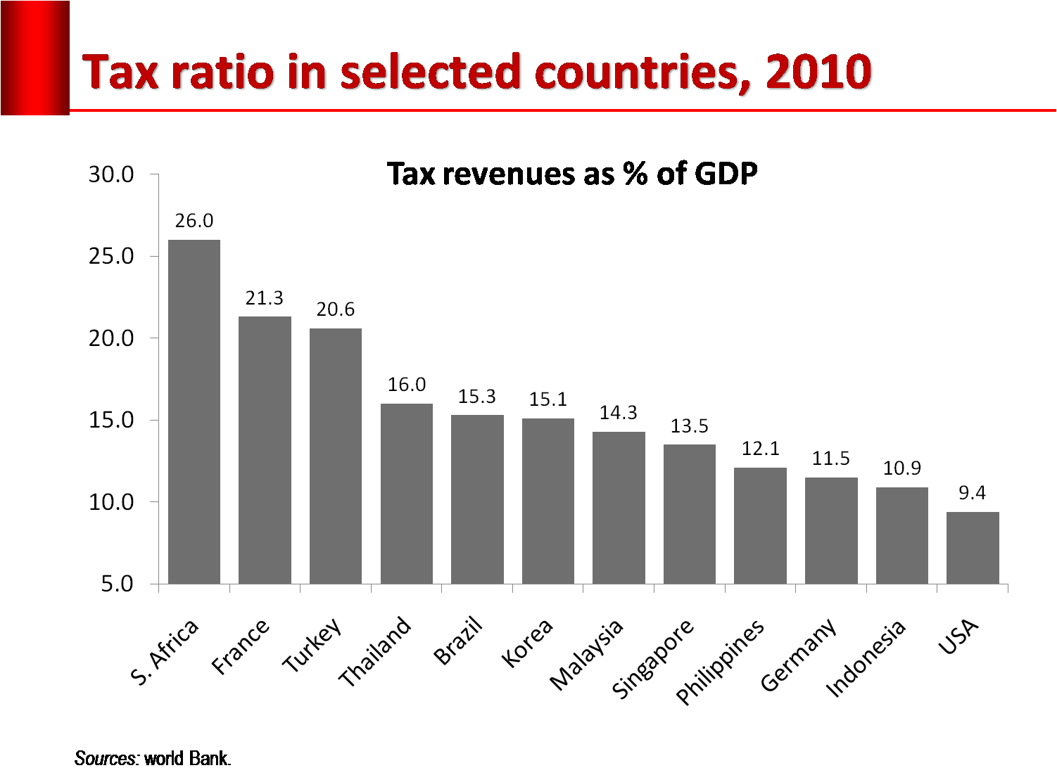 Bagaimana dengan jantung kedua, yaitu pemerintah? Serupa saja kondisinya sebagaimana terlihat dari nisbah pajak (tax ratio) dan konsumsi pemerintah (general government consumption)