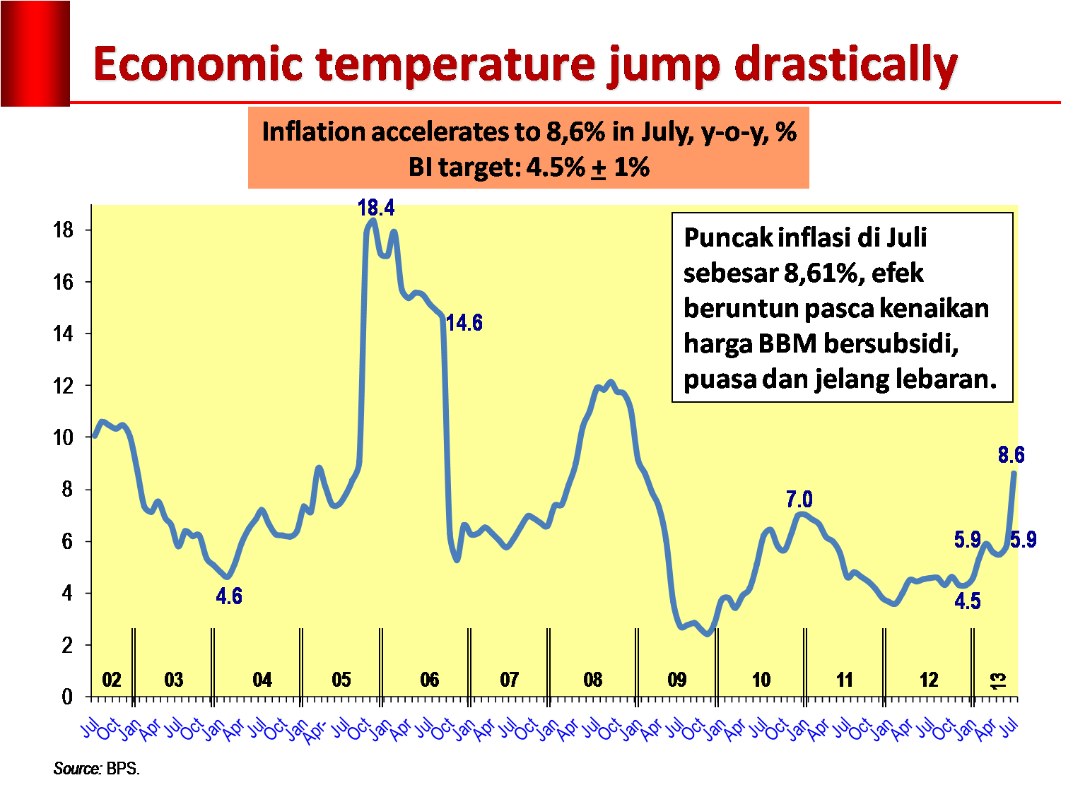 Akhirnya menjadi kenyataan bahwa laju kenaikan harga-harga (inflasi) Juli jauh melampaui target pemerintah sebesar 7,2 persen dan perkiraan banyak lembaga riset. Juga jauh melampaui perkiraan Bank Indonesia sebesar 2,87 persen month to month.