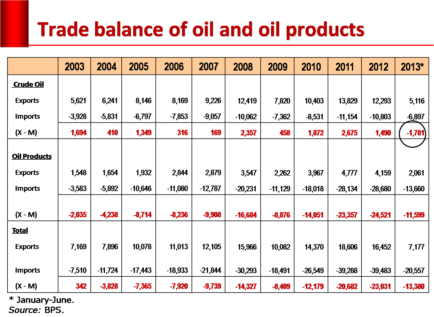 Keadaan ini diperparah dengan peningkatan pesat impor bahan bakar minyak (BBM) dan sejak 2013 transaksi perdagangan minyak mentah pun sudah mengalami defisit.