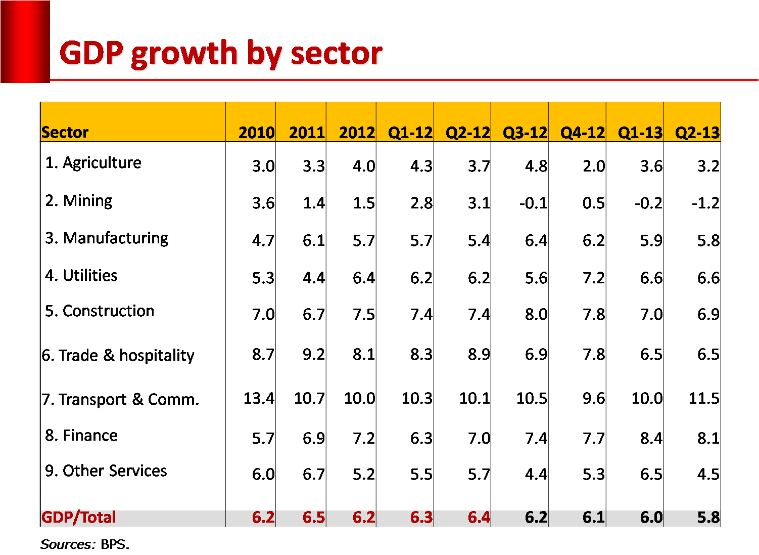 Pertumbuhan sektor non-tradable yang semakin jauh meninggalkan sektor tradable berdampak pada penurunan relatif kapasitas perekonomian dalam mengekspor, sehingga berdampak ke transaksi perdagangan di neraca pembayaran. Profil pertumbuhan sektoral bisa dilihat pada peraga berikut.