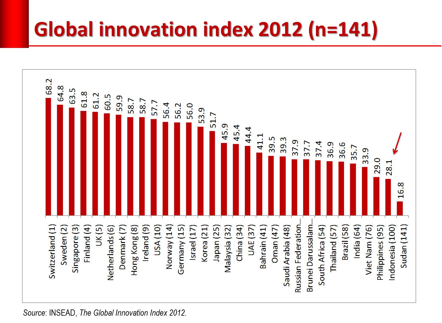 Kenyataan ini sejalan dengan urutan Indonesia dalam Global Innovation Index yang juga tercecer.