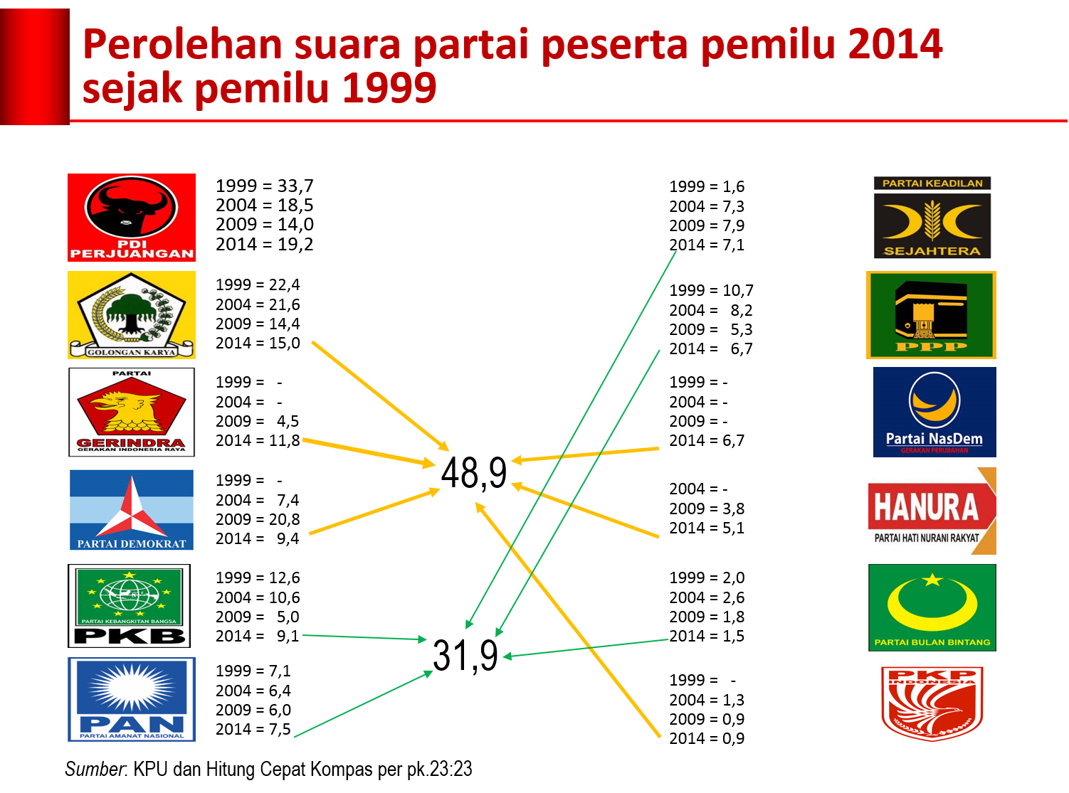 Berdasarkan hasil perhitungan cepat Kompas yang diunduh pada pk.23:23, PDI-P hanya memperoleh 19,2 persen. Masih ada peluang bagi PDI-P untuk mencalonkan presiden dan wakil presiden tanpa harus menggandeng partai lain. Berdasarkan hasil pemilu 2009, persentase perolehan kursi DPR PDI-P lebih besar dari persentase perolehan suara, masing-masing 17 persen dan 14 persen. Kalau pola itu berulang, maka perolehan kursi DPR oleh PDI-P bias melewahi ambang batas partai untuk mencalonkan sendiri kandidat presiden dan wakil presiden sebesar 20 persen.