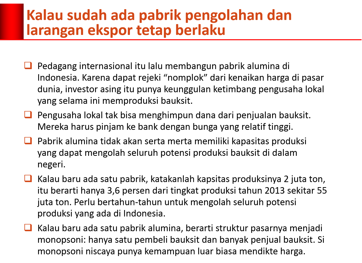 Berikut power point yang saya tayangkan pada sidang pagi hingga siang tadi. Judul aslinya “Tinjauan Ekonomi Larangan Ekspor Bauksit.