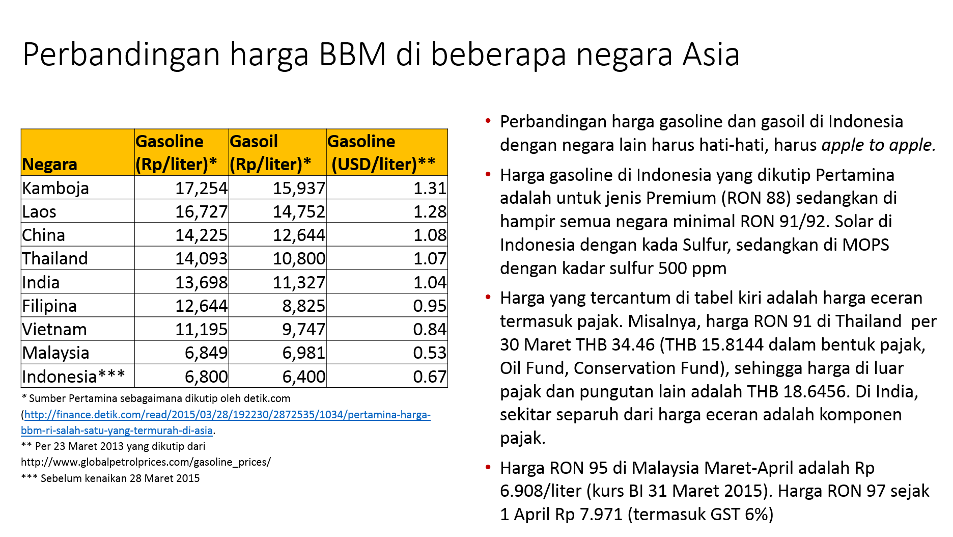 2. Perhitungan harga eceran BBM kurang transparan, sehingga masyarakat tidak dapat membandingkan harga BBM di dalam negeri dengan harga BBM sejenis di negara lain yang setara. (Lihat Lampiran)
