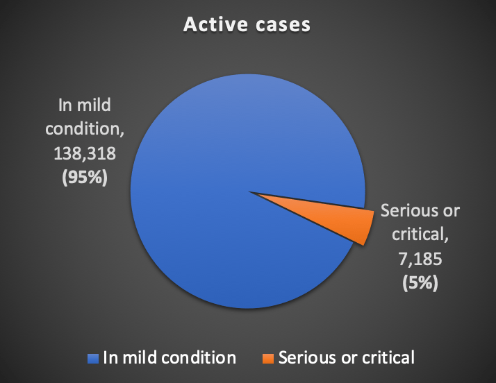 Di antara yang menyandang kasus aktif, hanya lima persen yang dalam kondisi serius atau kritis.