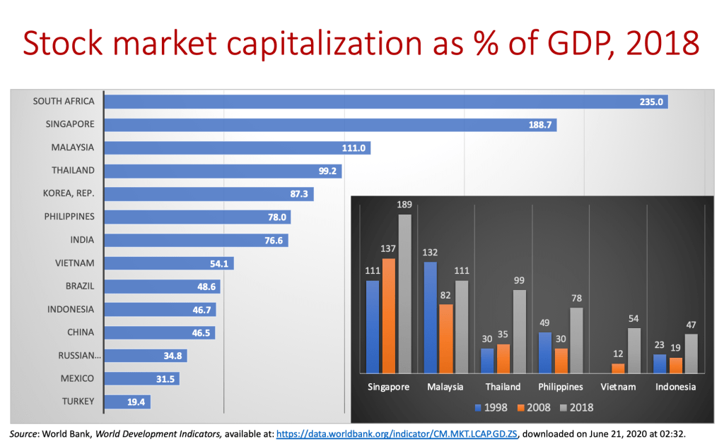 Yang agak lumayan adalah pasar saham. Kapitalisasi di pasar saham mengalami peningkatan dalam 20 tahun terakhir dan lebih tinggi ketimbang China, Rusia, Meksiko, dan Turki. Namun masih lebih rendah dibandingkan dengan Vietnam yang relatif baru mengenal bursa saham.