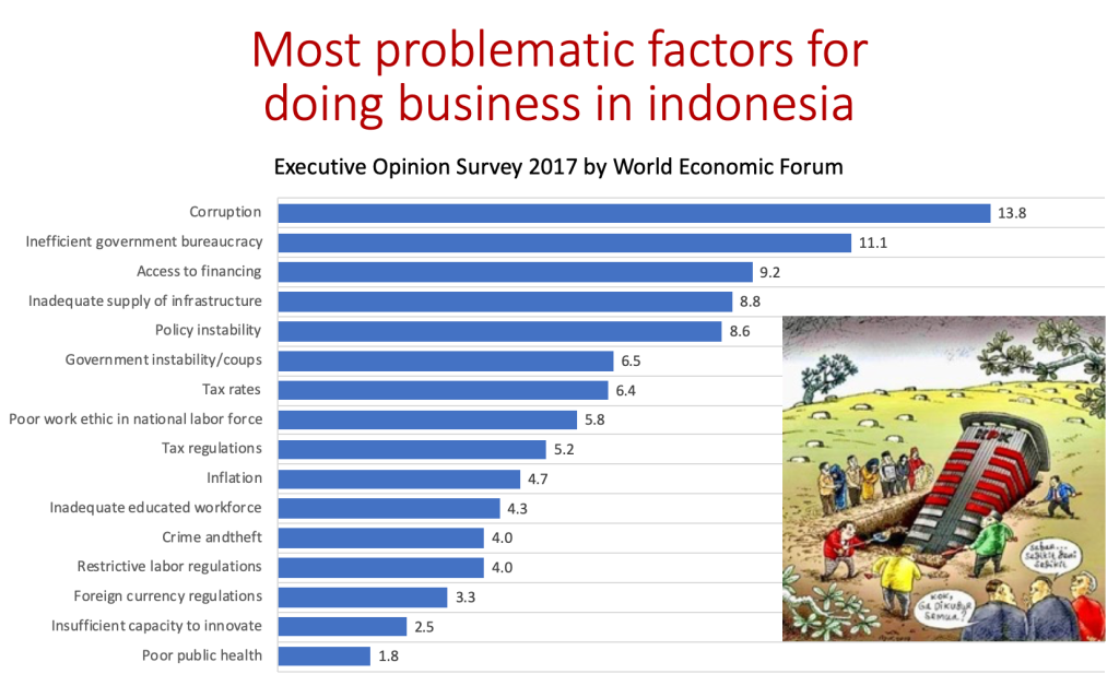 Tambahan utang yang terlalu banyak dan mendadak bakal menimbulkan berbagai komplikasi serius. Masalah yang belum terselesaikan masih bertumpuk, jangan tambah lagi masalah-masalah baru. Apalagi perilaku business as usual masih sangat kental di kalangan birokrasi dan parlemen. Pemborosan terjadi di mana-mana seperti tercerminkan dari incremental capital-output ratio (ICOR) yang melonjak dan sangat tinggi dalam lima tahun terakhir dan tertinggi sepanjang sejarah serta tertinggi pula di ASEAN. Lihat Musuh Utama Kita: Ekonomi Boros. Survei World Economic Forum memperkuat konstatasi ini. Birokrasi pemerintahan yang tidak efisien menduduki urutan kedua setelah korupsi yang membuat investor pening berbisnis di Indonesia.