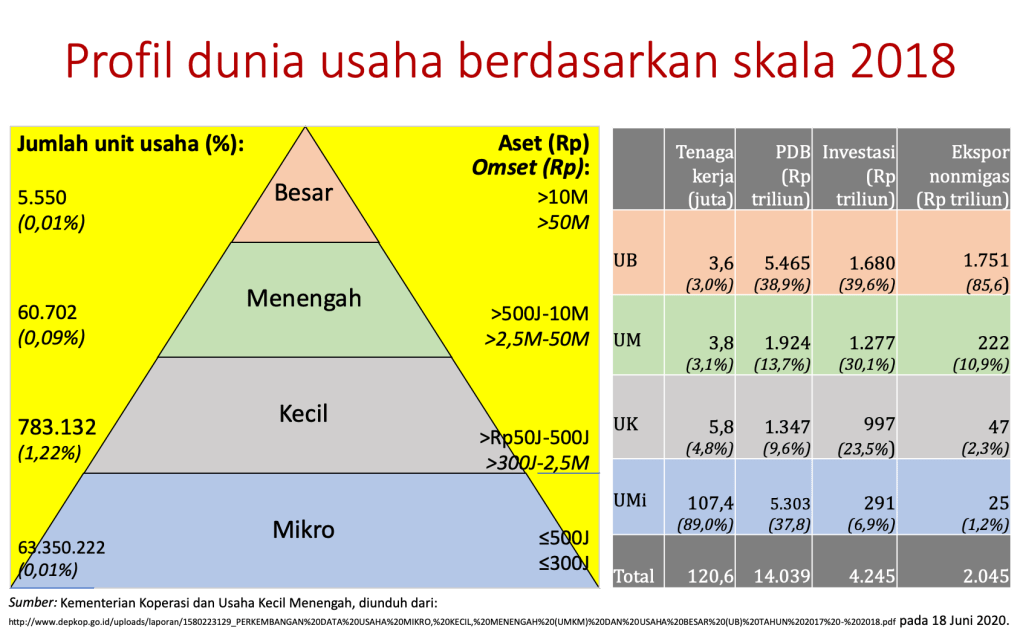 Populasi UMKM berjumlah lebih dari 64 juta unit usaha. Hampir semua (98,7 persen) adalah usaha mikro.