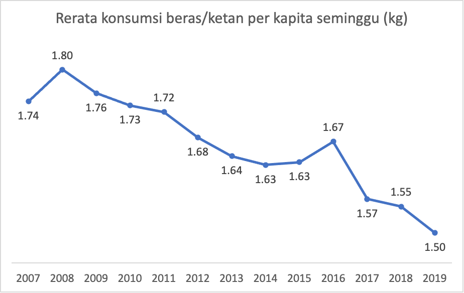 Selain itu, data BPS menunjukkan terjadi tren penurunan konsumsi beras/ketan sejak 2009. Dalam tiga tahun terakhir penurunanya mencapai lebih dari 10 persen. Hal ini sudah barang tentu turut meredam kebutuhan impor.